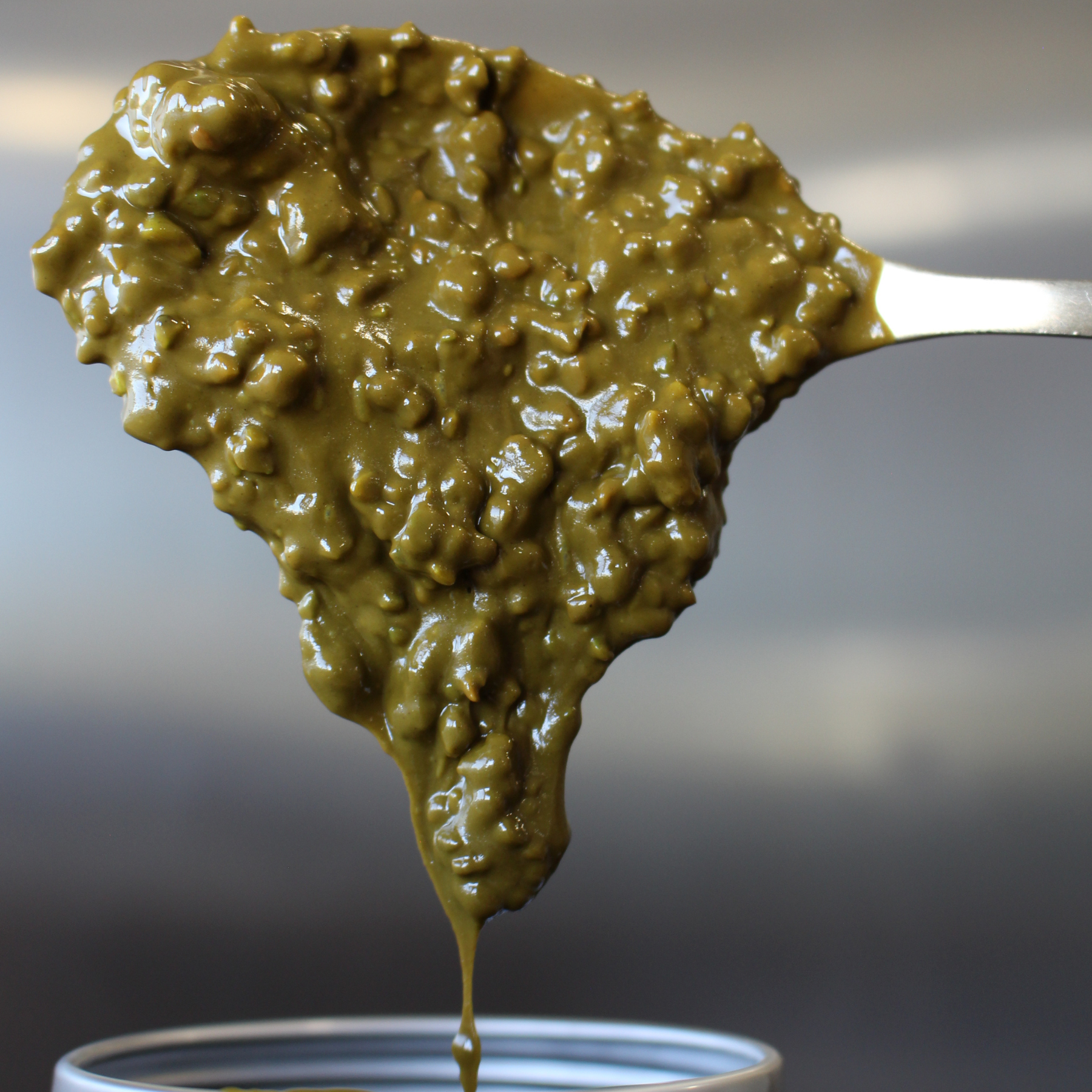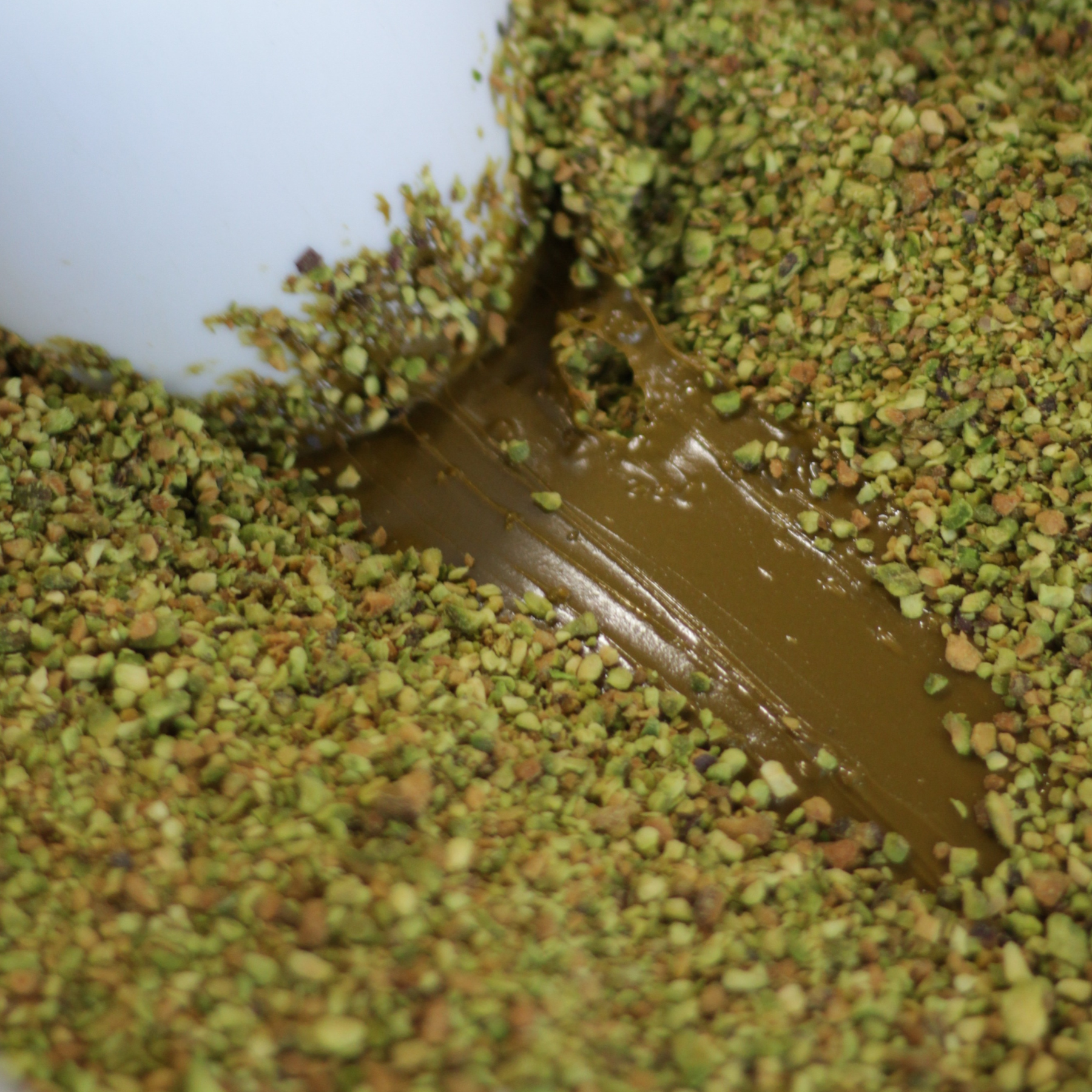 Así es como conseguimos una crema de 100% pistacho tostado, ahora con estos trocitos que le hacen ese crunchy delicioso.