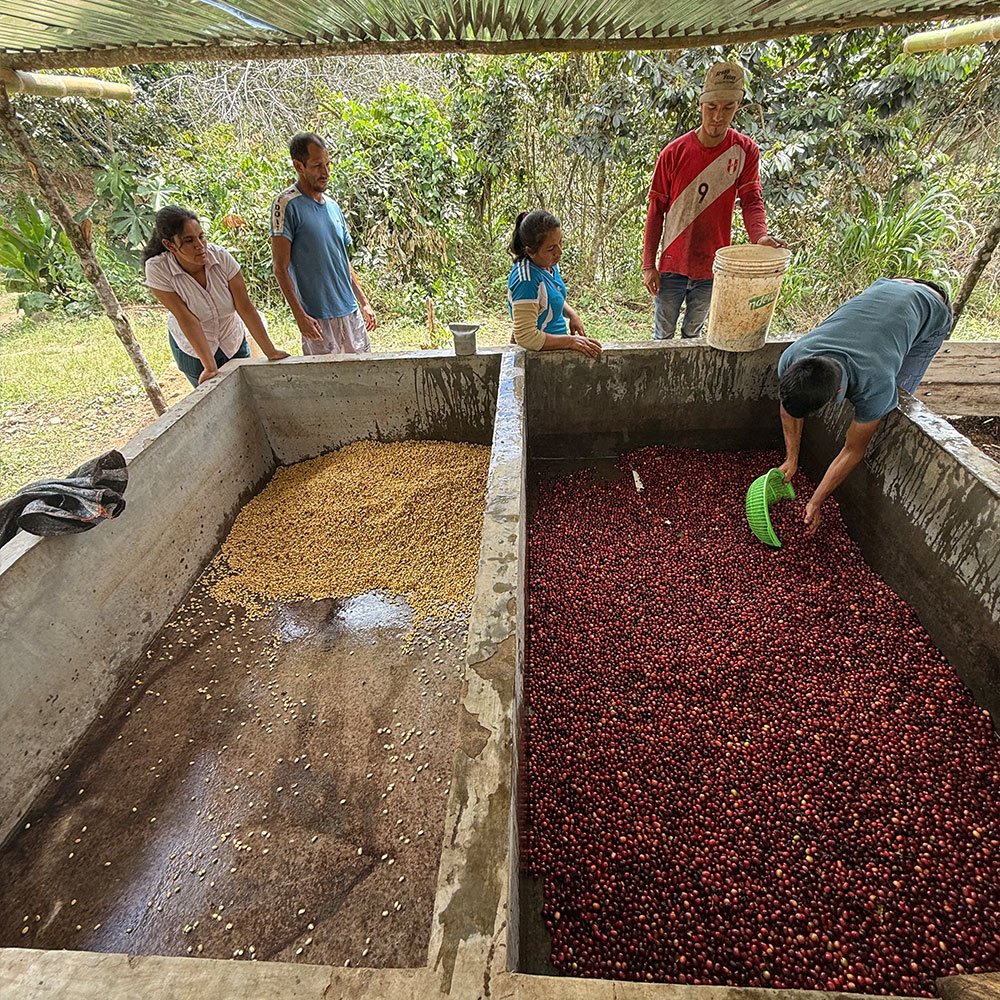 Las fincas, de carácter familiar, trabajan con variedades como Catuai, Caturra, Catimor, Bourbon y Pache, combinando diversidad y riqueza en el perfil final del café. Los productores reciben formación continua, lo que les permite perfeccionar tanto el cultivo como los procesos posteriores, asegurando una calidad constante y sostenible.